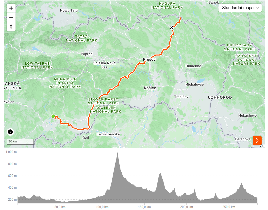 Poltár – Rimavská Sobota – Rimavská Seč – Kráľ – Tornaľa – Čoltovo (OMV – prestávka) – Rožňava – Sedlo Úhorná (prestávka) – Smolník – Gelnica – Jaklovce (obed) – Margecany – Žipov – Prešov – Kapušany – Lipníky – Chmeľov (prestávka) – Giraltovce – Šarišský Štiavnik – Svidník – pamätník Dukla – Svidník cca 284km